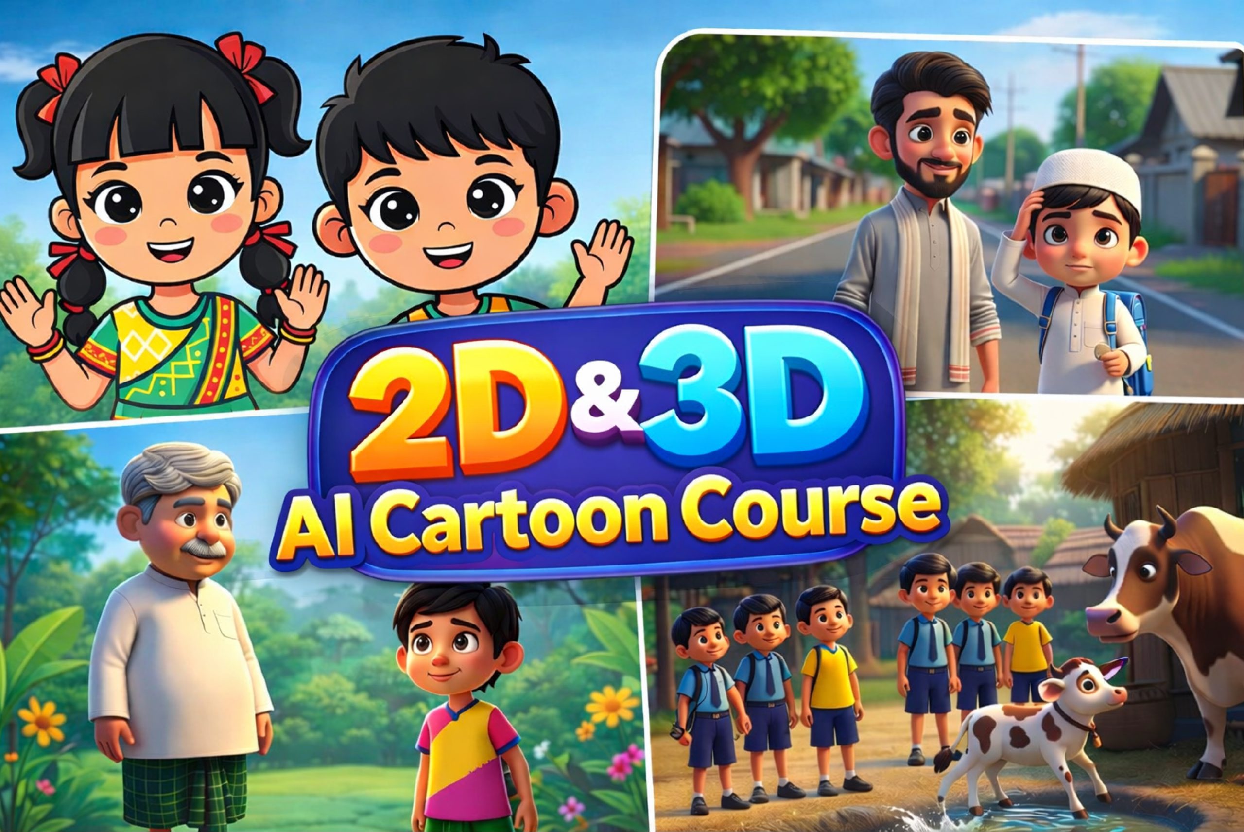 2D & 3D Bangla AI Cartoon VIDEO Full Course